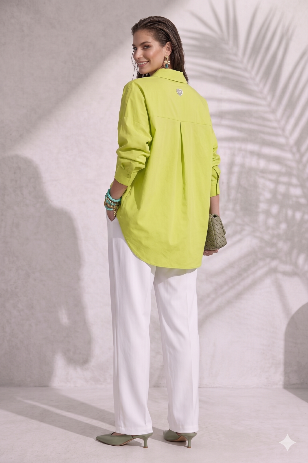 Camasa dama verde fistic din bumbac
