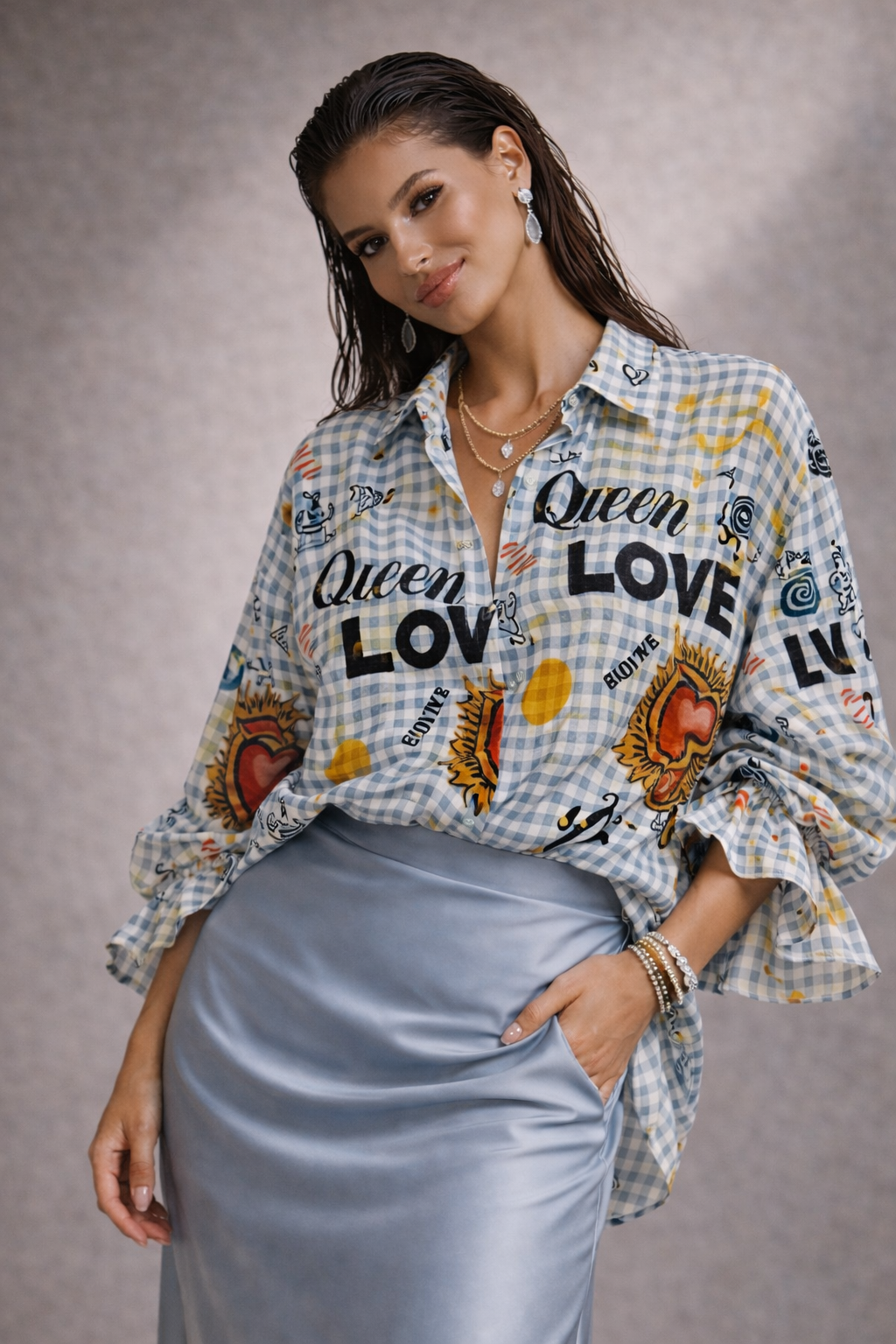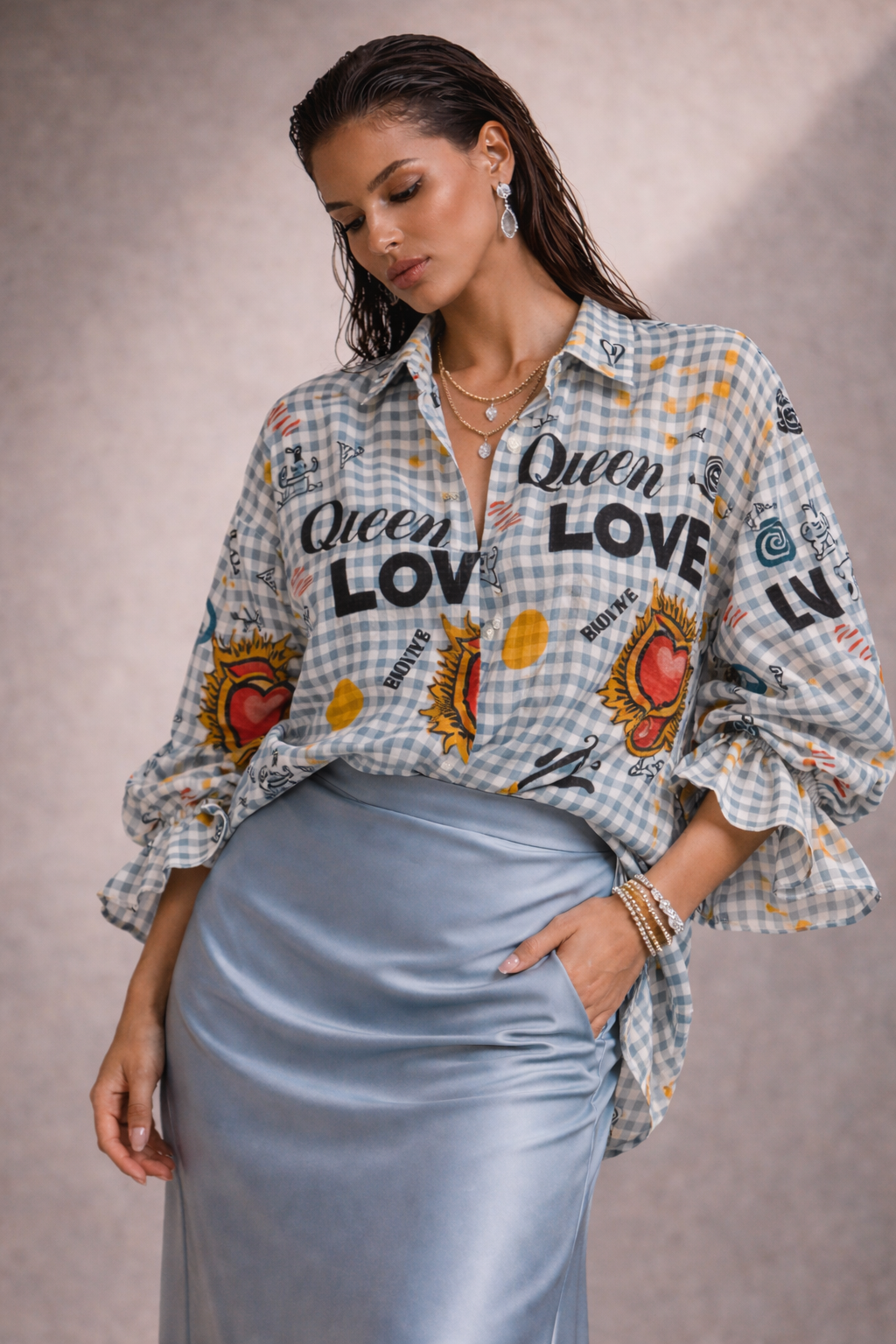 Este cămașa care îmbină echilibrul clasic al albului cu dinamismul unui model expresiv, potrivit femeii care își dorește să iasă din tipare, dar să își păstreze eleganța. Croiala avantajează silueta, iar designul atent ales oferă versatilitate și ușurință în asortare.