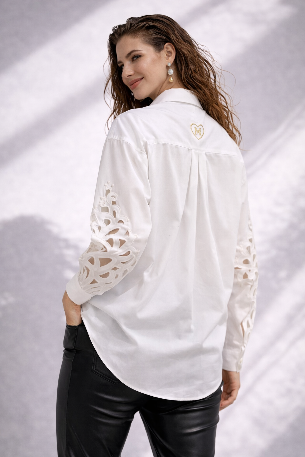Camasa dama alba cu maneci decupate si fundita detasabila la guler