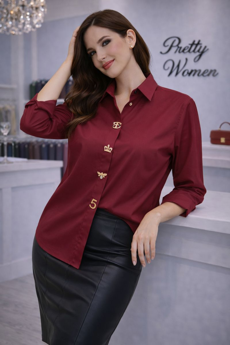 Eleganță cu un strop de îndrăzneală – asta transmite această cămașă bordo, perfectă pentru femeia care iubește simplitatea cu detalii spectaculoase. Confecționată din bumbac 100%, are o croială ușor cambrată și asimetrică, care flatează silueta și oferă libertate de mișcare.