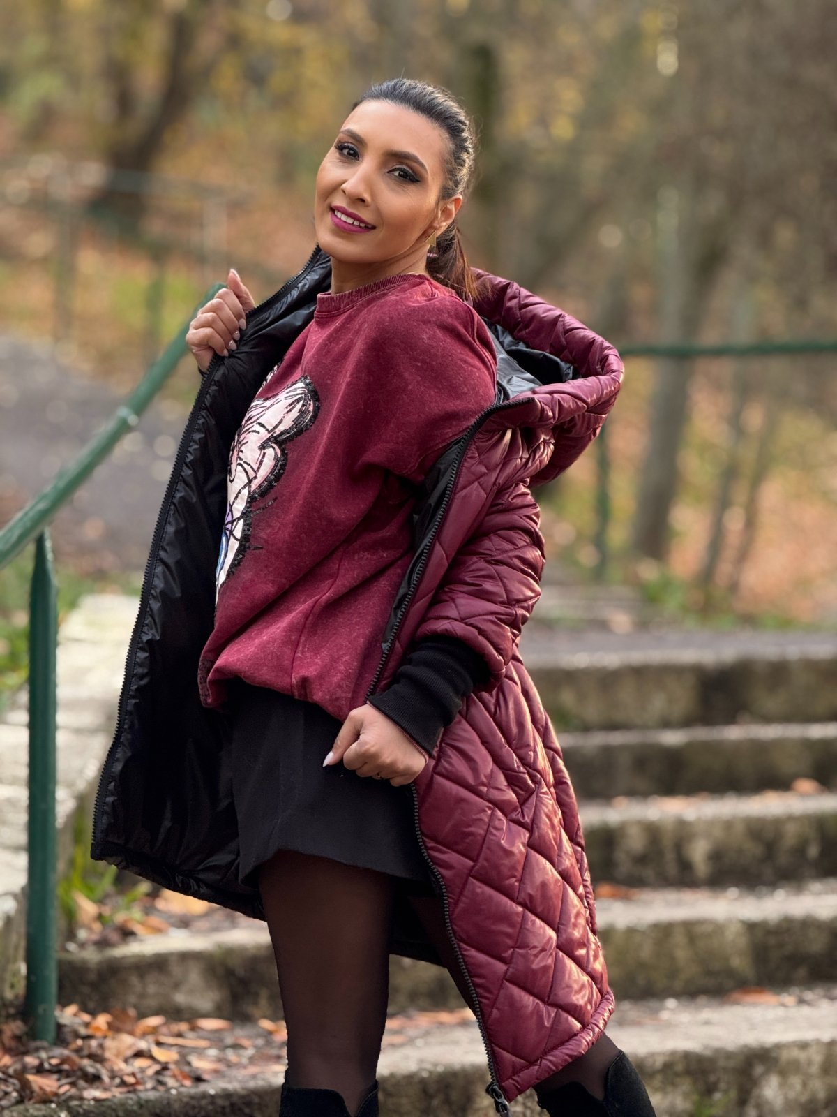 Unele zile de toamnă cer o haină care nu doar să te apere de frig, ci să te și îmbrățișeze cu eleganță. Geaca lungă bordo cu emblemă e mai mult decât un simplu articol de îmbrăcăminte — e o declarație de stil, în tonuri calde, care te învăluie ca o mângâiere.