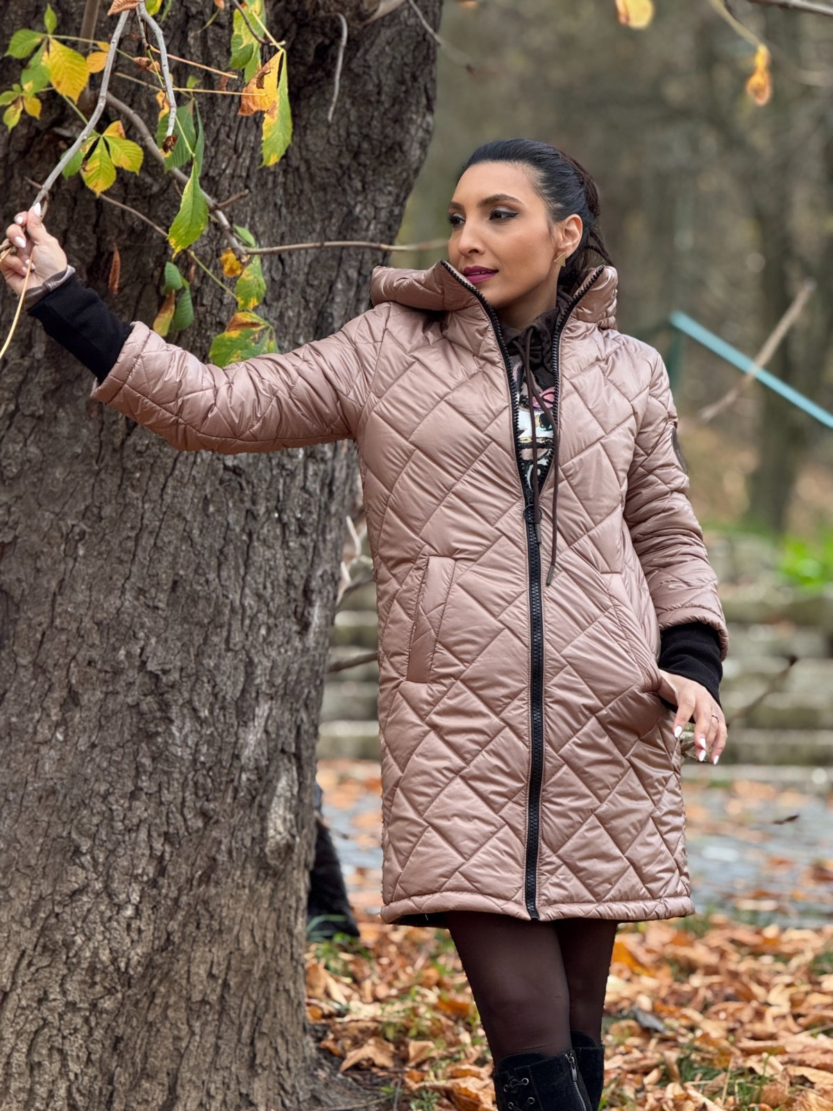 Geaca lungă cappuccino cu emblemă este acel gen de piesă vestimentară care îți încălzește nu doar trupul, ci și starea de spirit. Nuanța blândă de cappuccino adaugă rafinament și calm oricărei ținute, iar croiala lungă și elegantă îți oferă o siluetă frumoasă, feminină, fără efort.