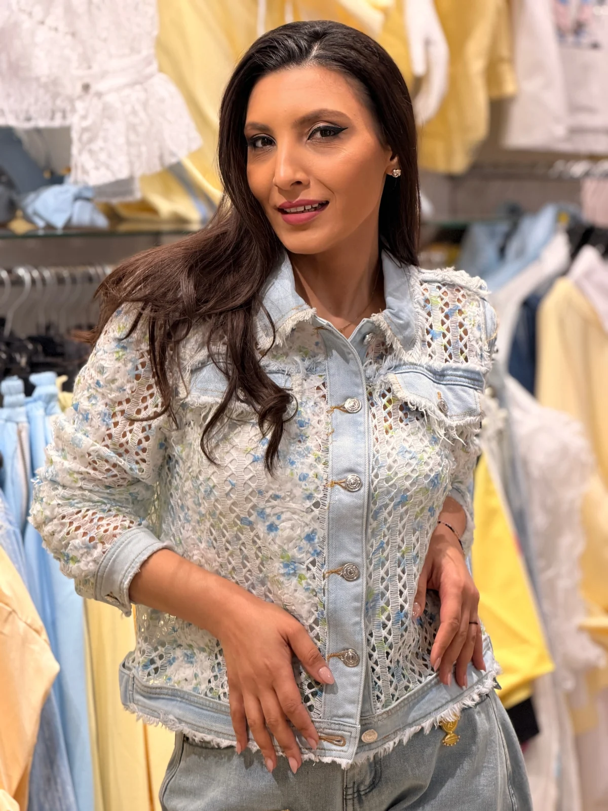 Jacheta dama alba cu imprimeu perforat
