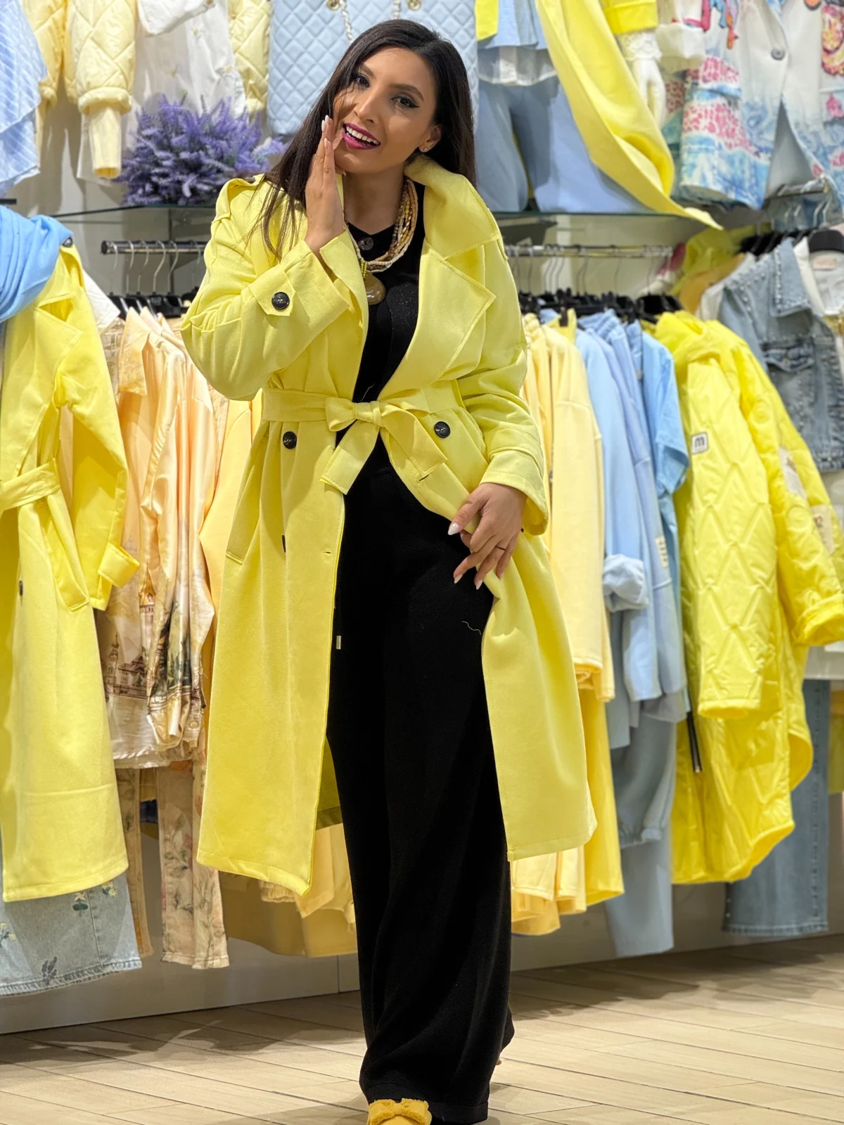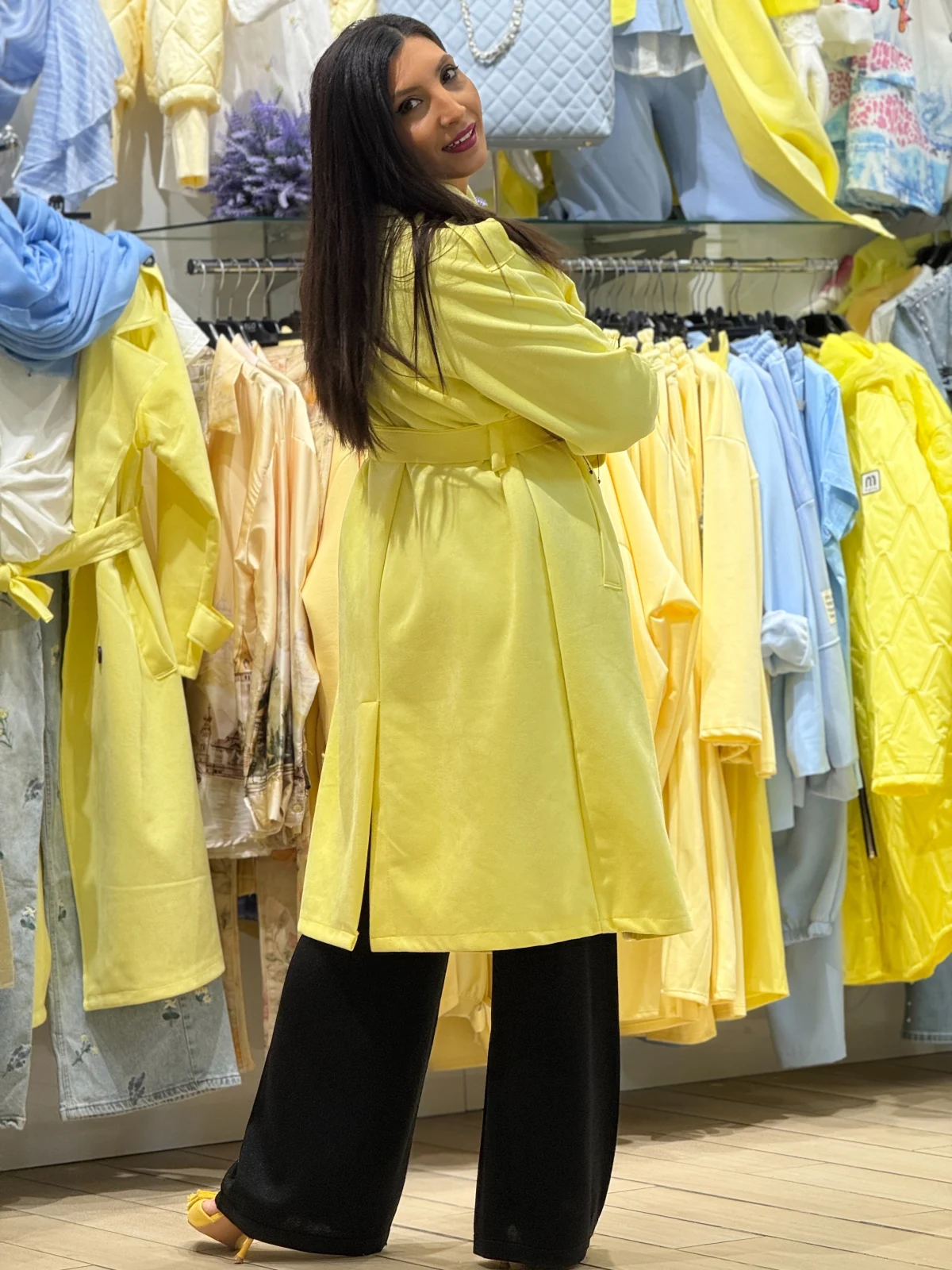 Jacheta dama galben pastel din piele intoarsa cu cordon in talie