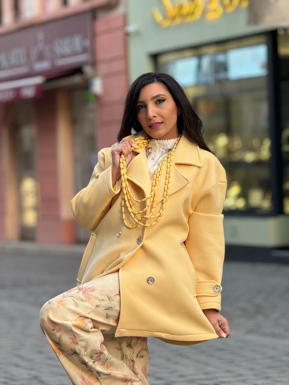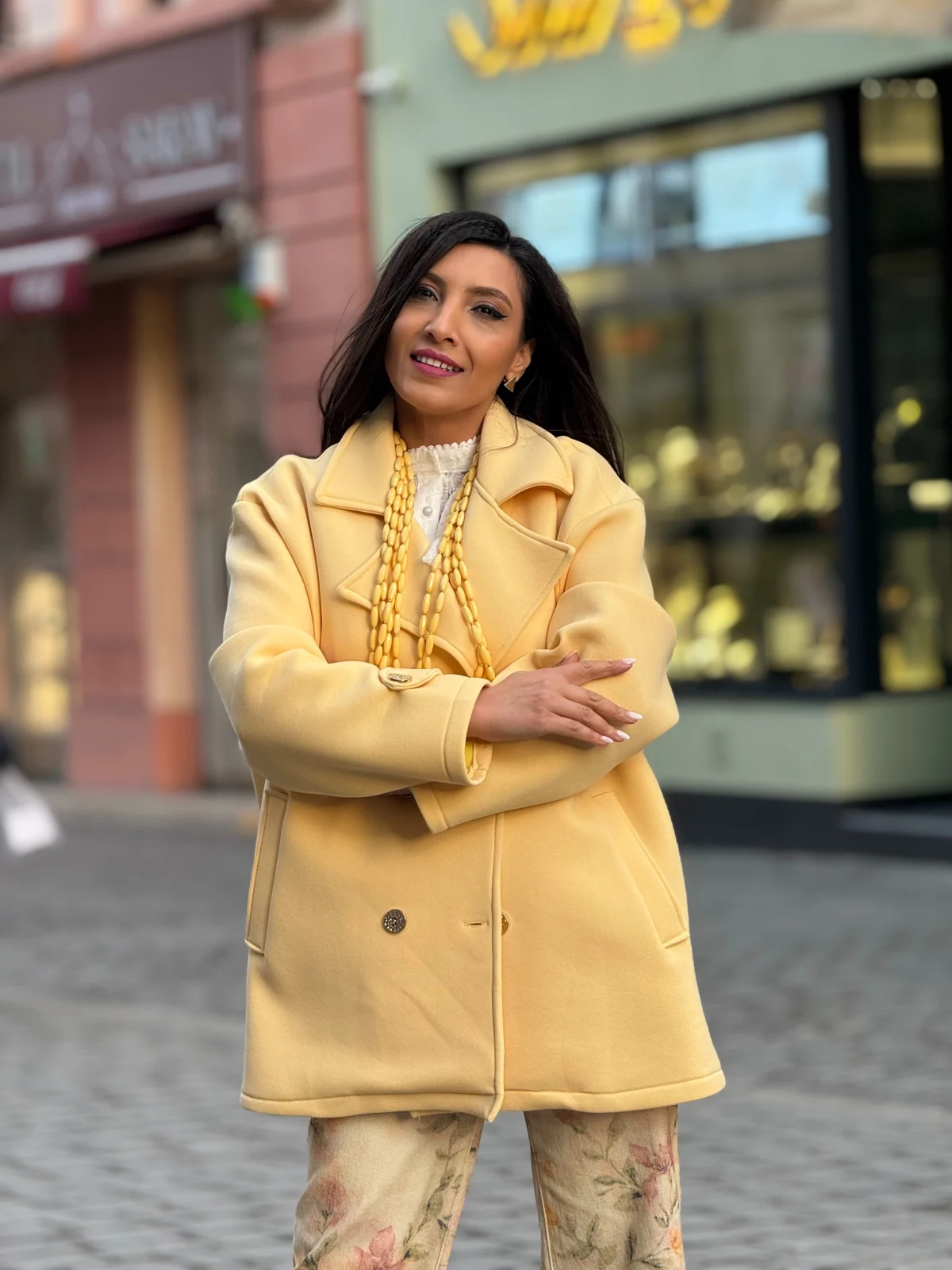 Jacheta dama galbena cu doua randuri de nasturi