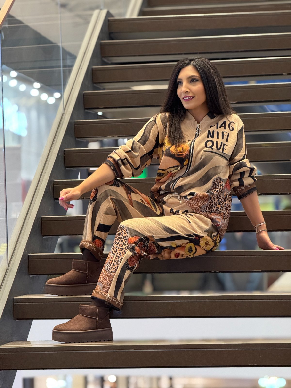 Culoarea neutră o face ușor de integrat în garderoba ta, în timp ce imprimeul vibrant captează atenția și adaugă o notă boemă ținutelor tale. Este comodă, practică și extrem de versatilă – perfectă pentru zilele răcoroase în care vrei să porți ceva cu suflet.