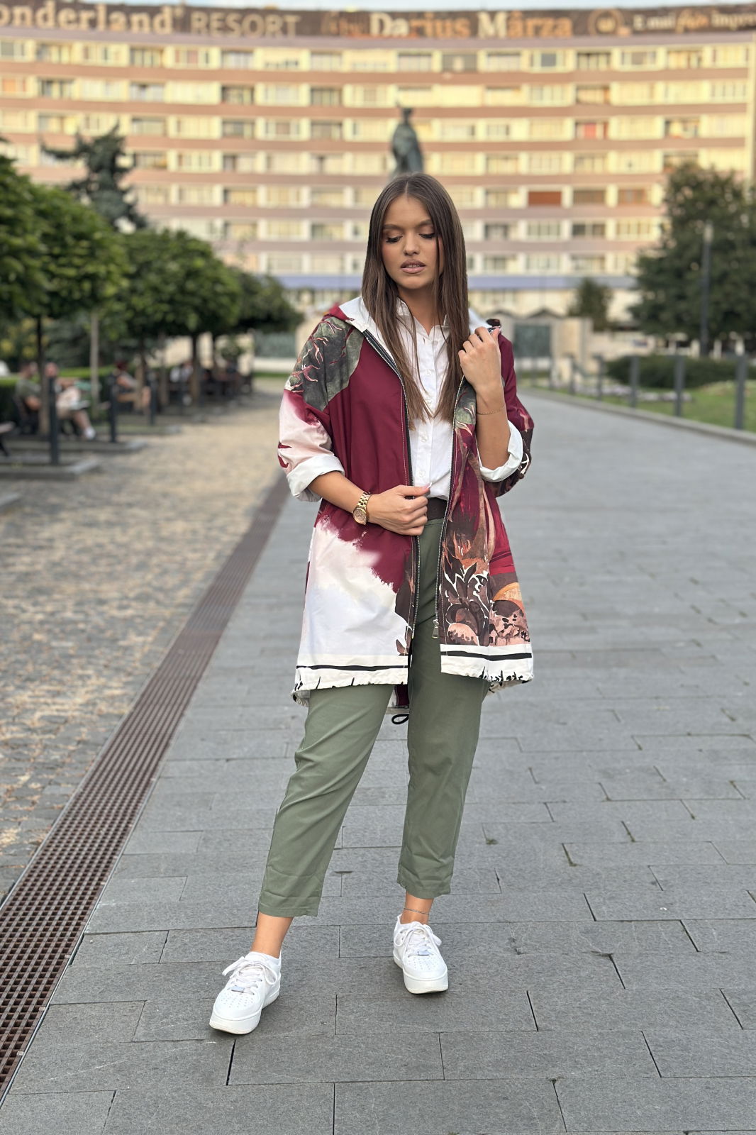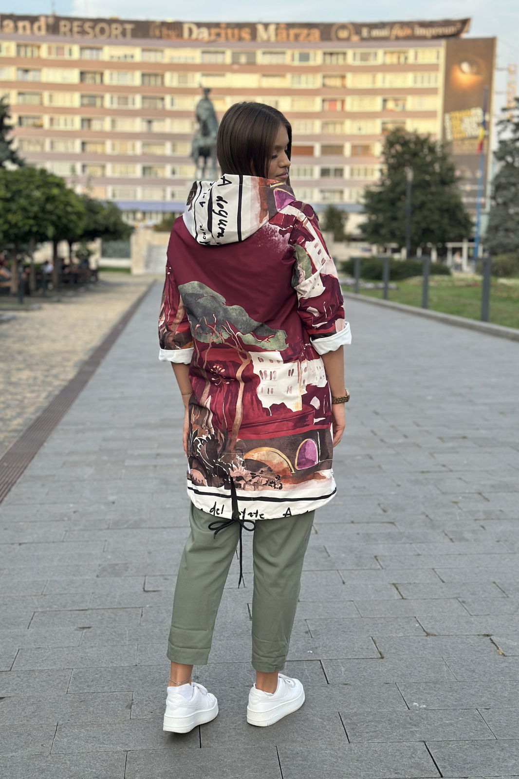 Jacheta dama visinie artistica cu fermoar si imprimeu peisaj