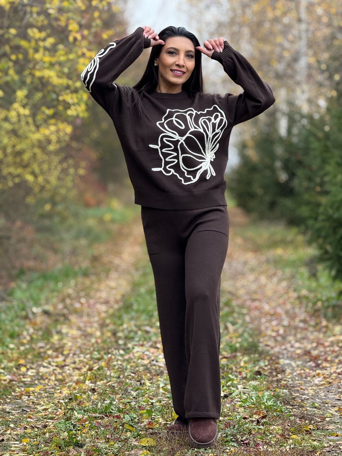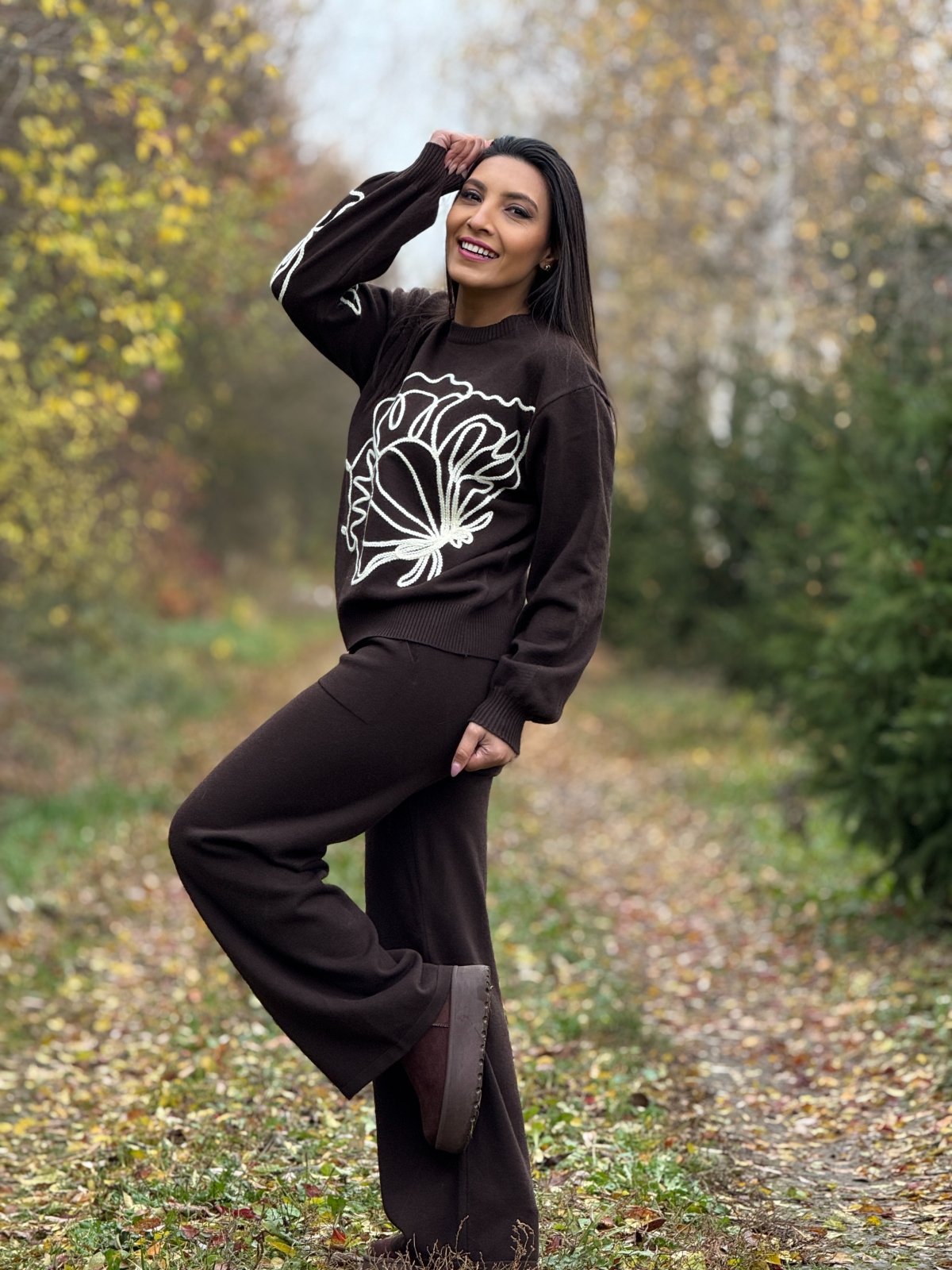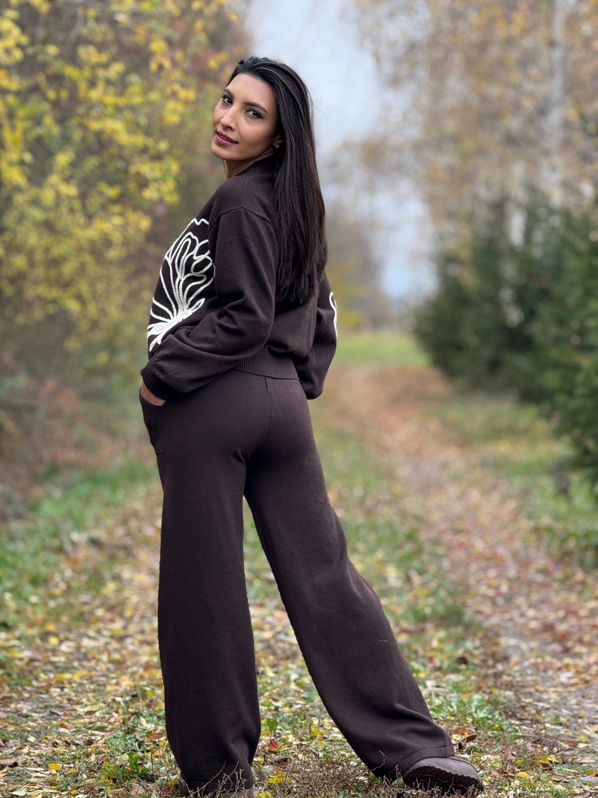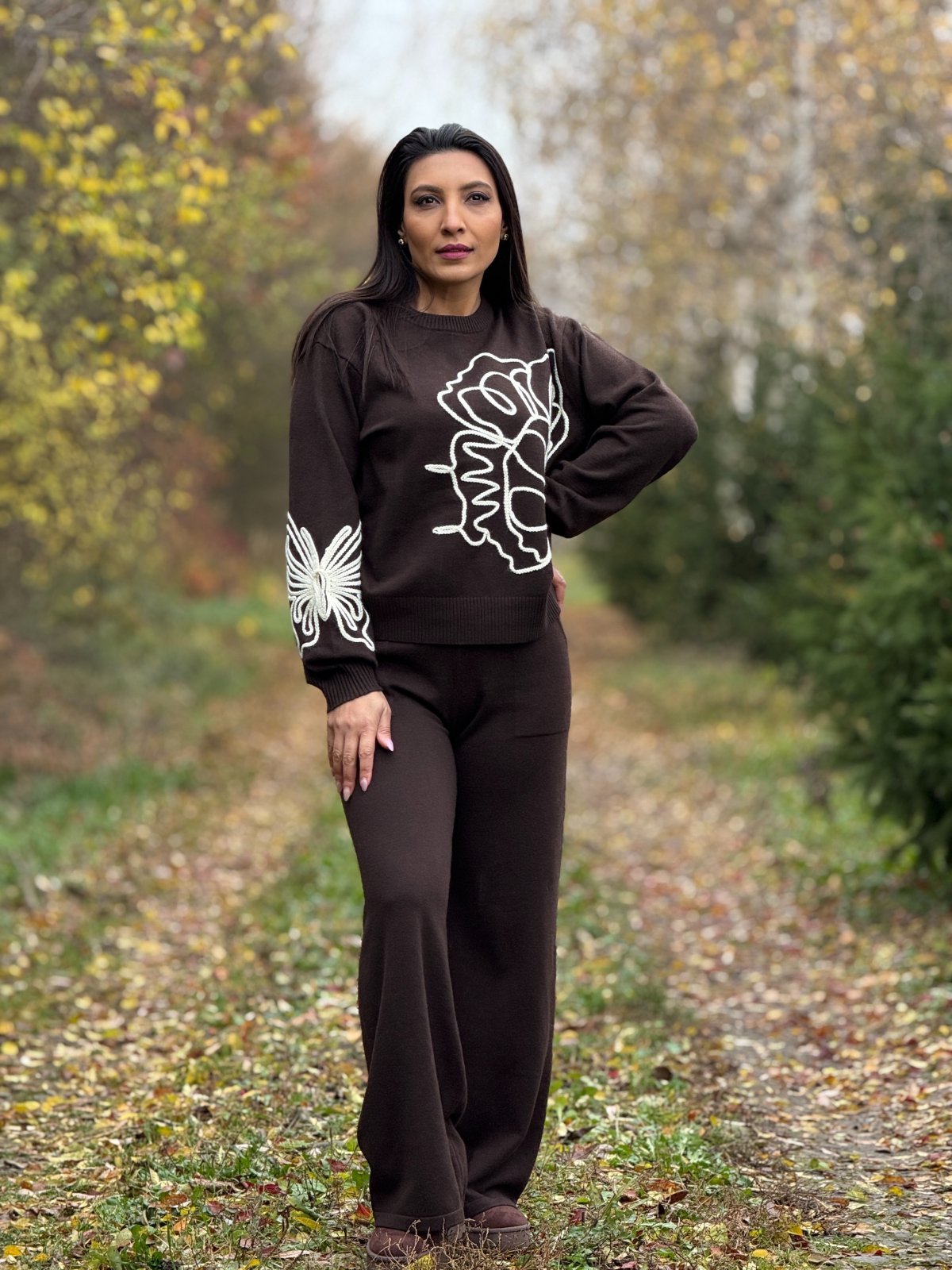 Imprimeul cu fluturi adaugă o notă jucăuşă şi delicată, ca o adiere de libertate şi feminitate. Ţesătura tricotată îţi învăluie silueta cu blândeţe, în timp ce designul întregului set îţi oferă o stare de confort şi eleganţă.