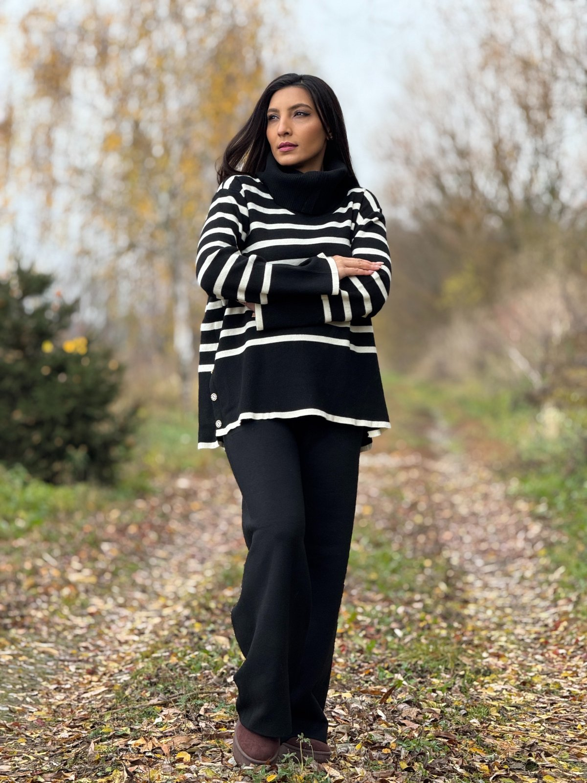 Este genul de outfit în care te simți frumoasă fără să încerci prea tare — fie că ieși la o cafea, te relaxezi acasă sau faci o plimbare de toamnă. Lasă-te învăluită de căldură, simplitate și stil!