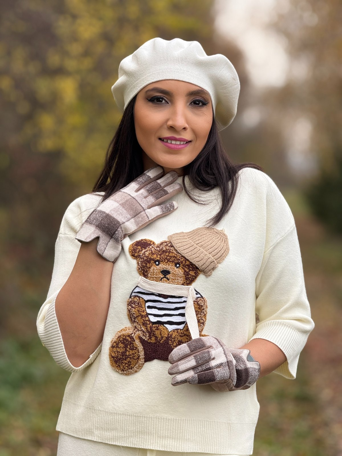 Mănuşi crem, cu imprimeu în carouri — rafinate şi versatil