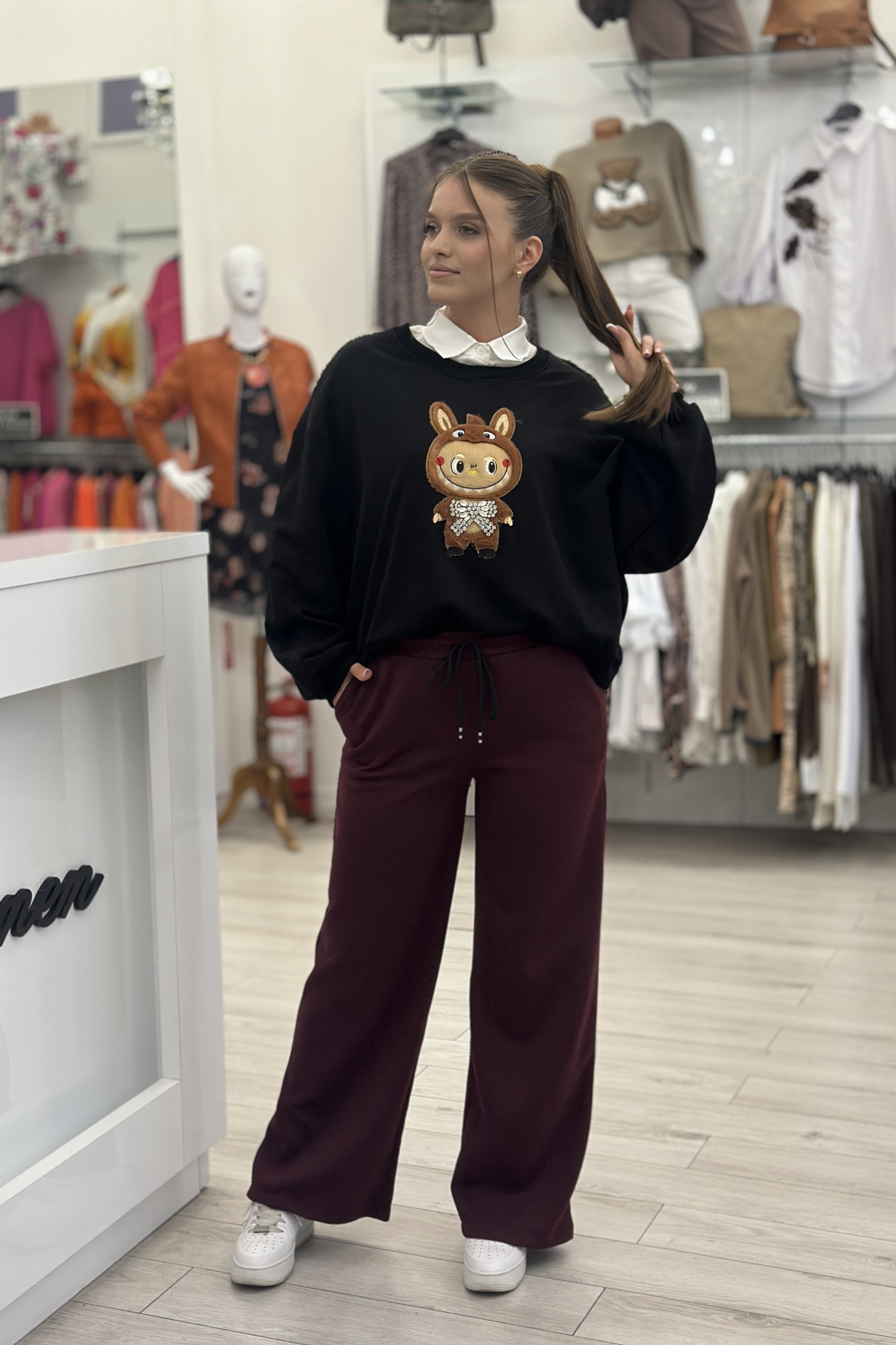Pantaloni dama bordo cu snur negru si elastic in talie