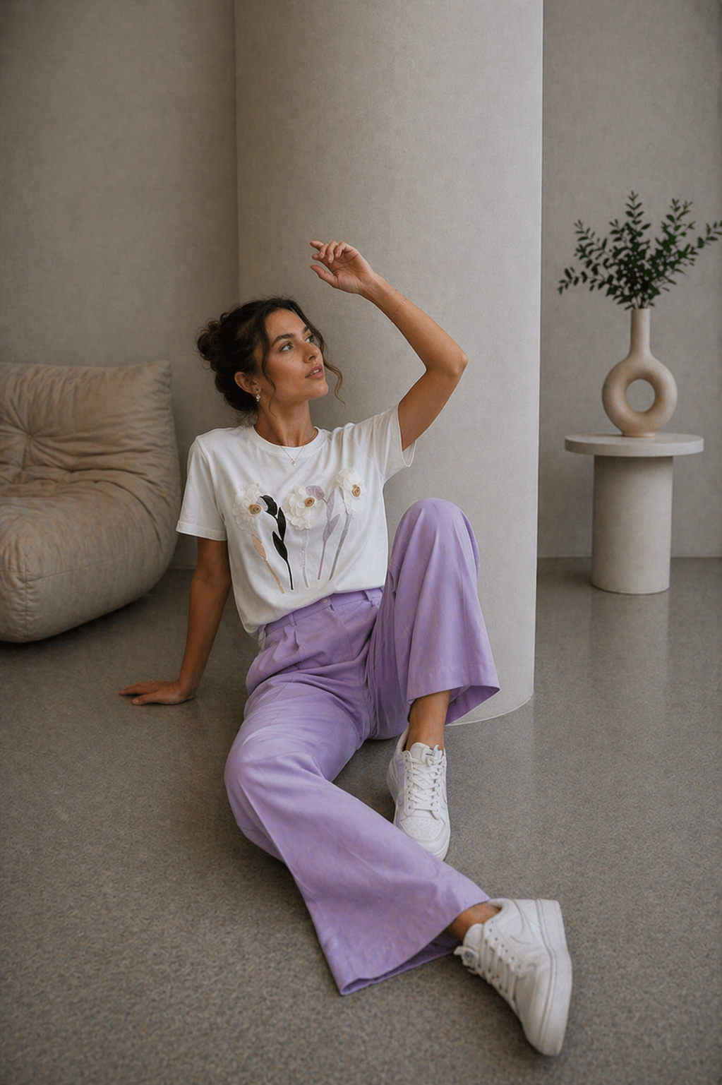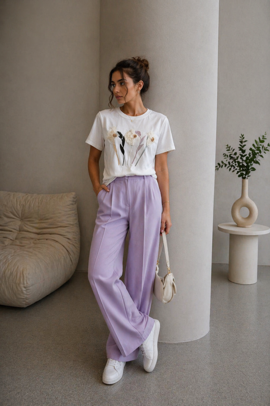 Tricou dama alb cu imprimeu 3D lalea mov