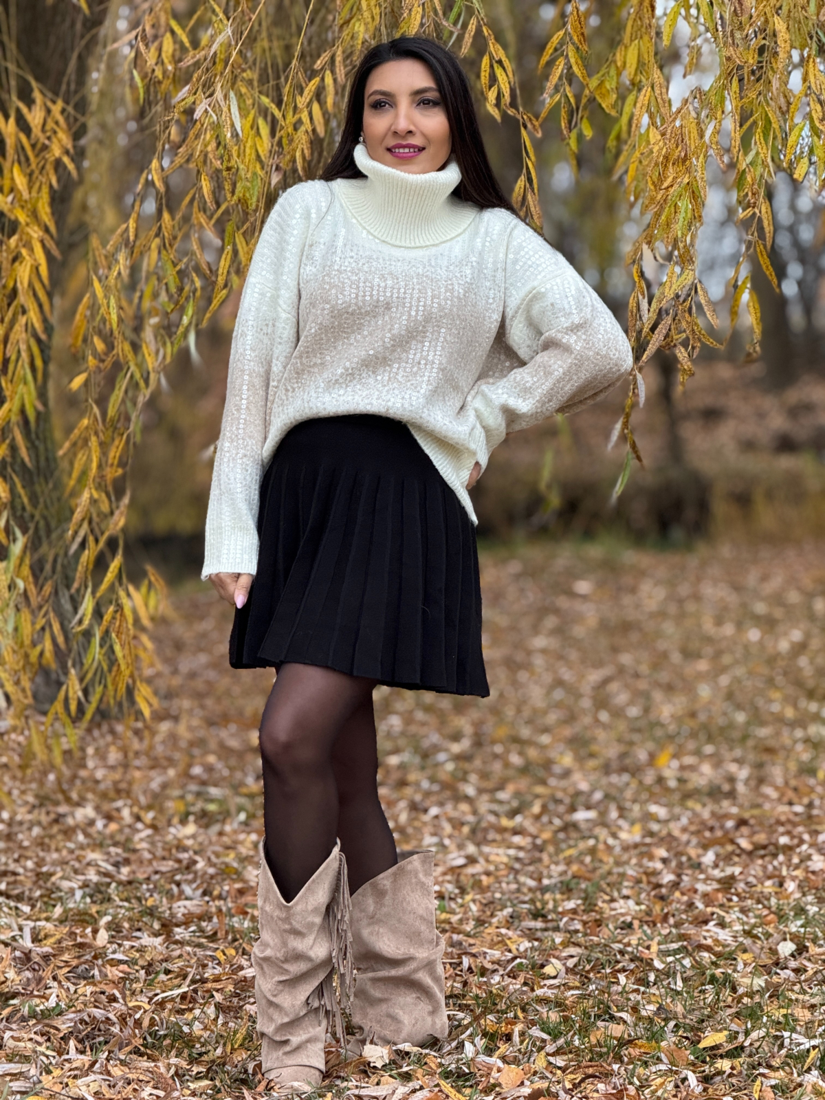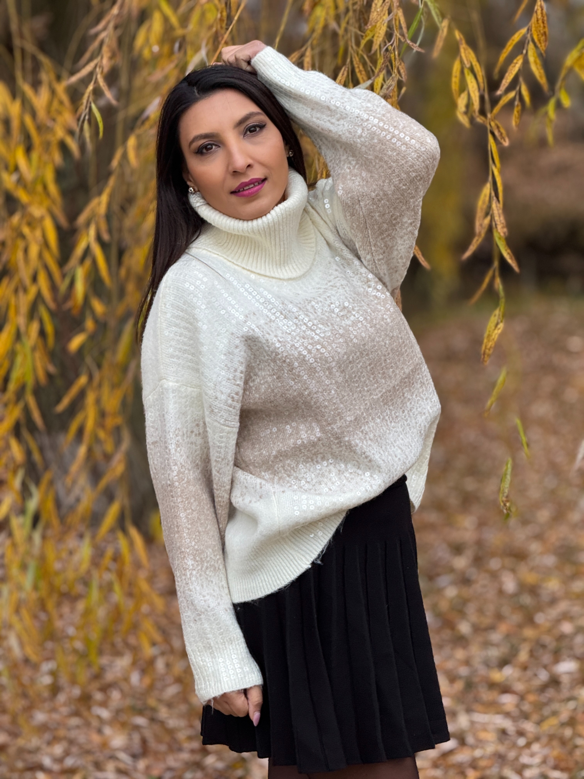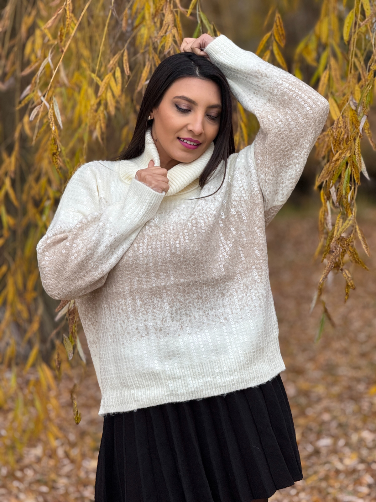 Te invităm să porți o piesă care îți vorbește în șoaptă despre eleganță și prezenţă. În nuanța caldă de crem, bluza aceasta se aşază uşor pe umeri ca o promisiune blândă. Gâtul înalt te învăluie cu confort şi rafinament — iar paietele aplicate cu delicateţe devin acea lumină fină ce reflectă liniştea ta interioară.