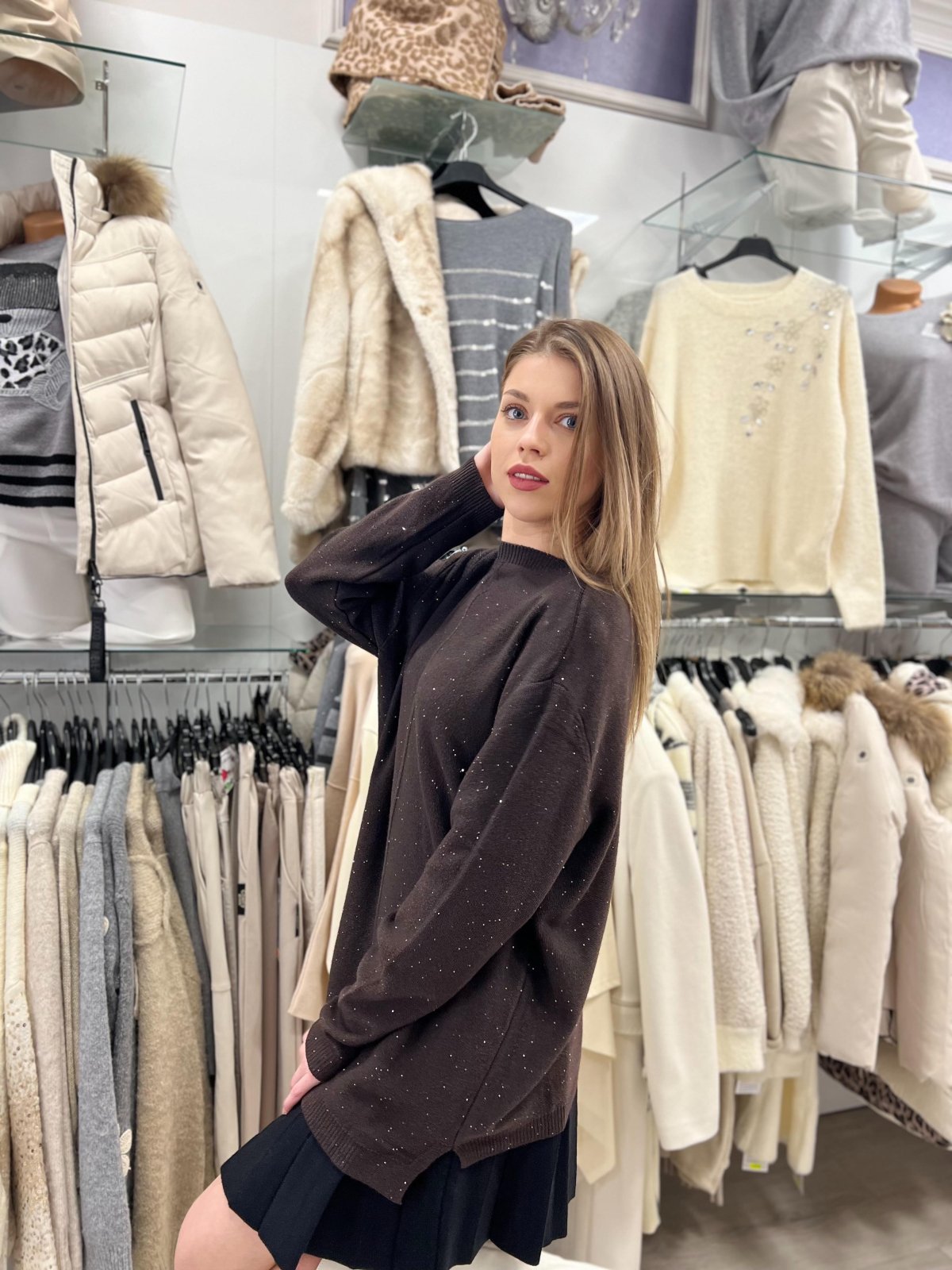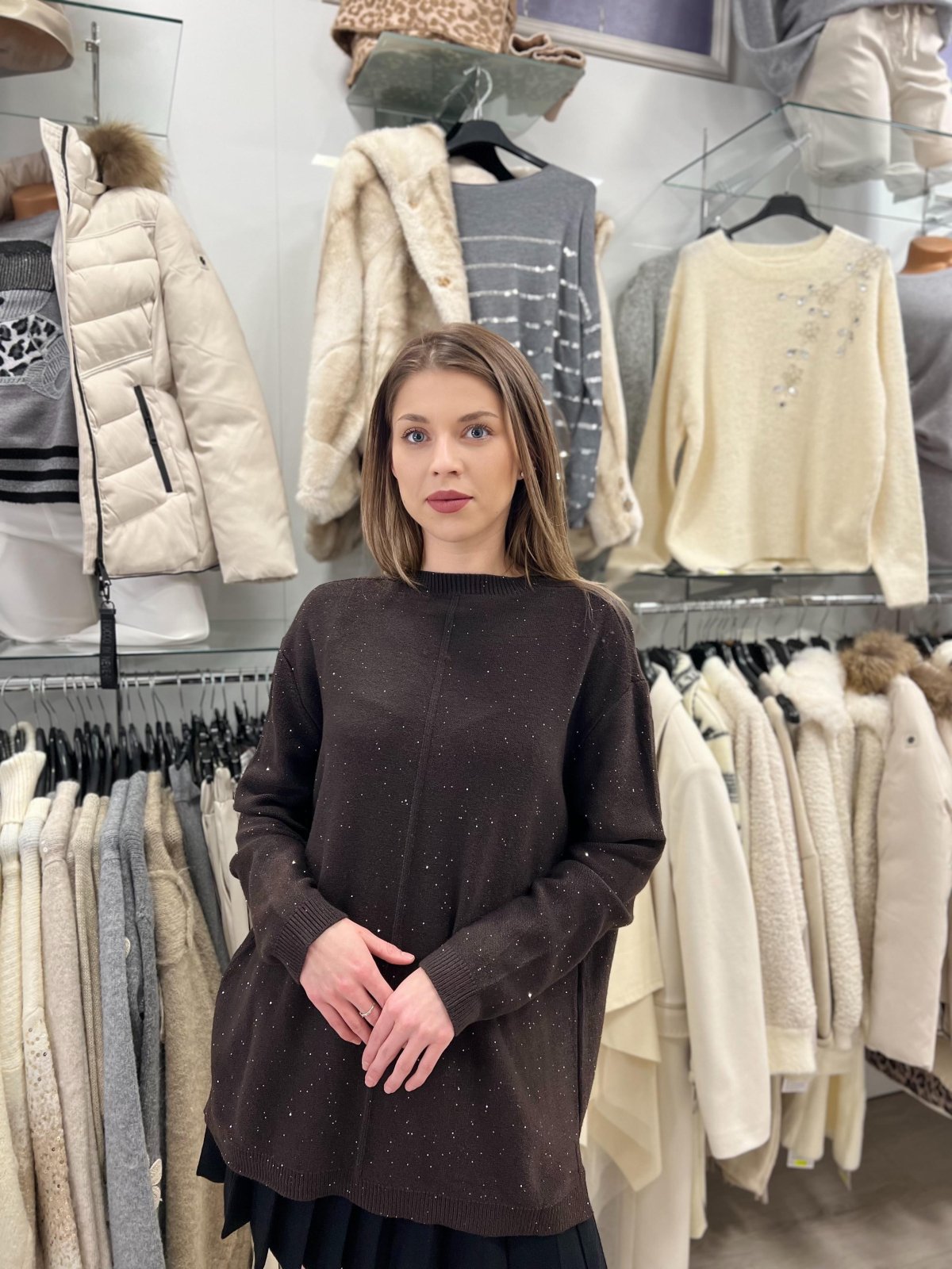 Există piese vestimentare care nu doar îți completează garderoba, ci și starea de spirit. Bluza maro cu sclipici și gât rotund este una dintre ele — o alegere elegantă, versatilă și în același timp profund feminină. Tonul cald de maro adaugă rafinament, iar strălucirea discretă îți luminează ținuta fără să o încarce. Este bluza în care te simți frumoasă fără să faci compromisuri, indiferent de siluetă.