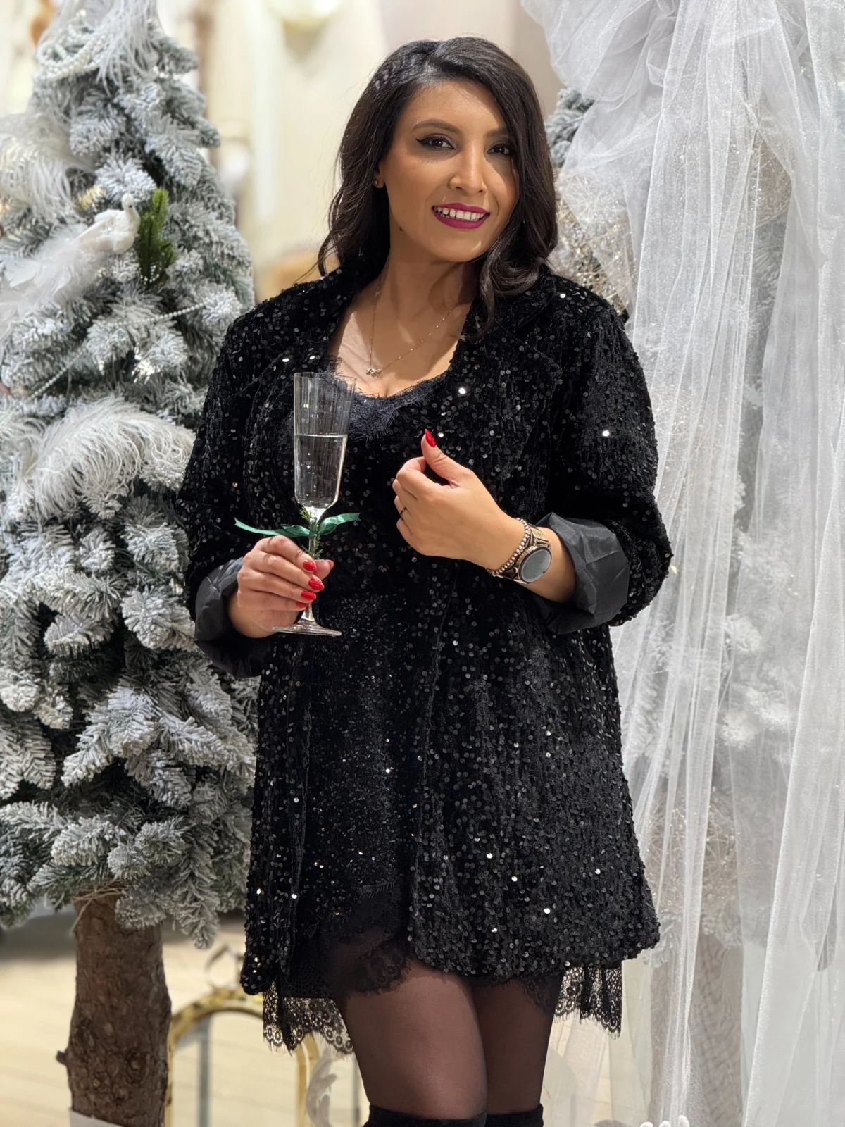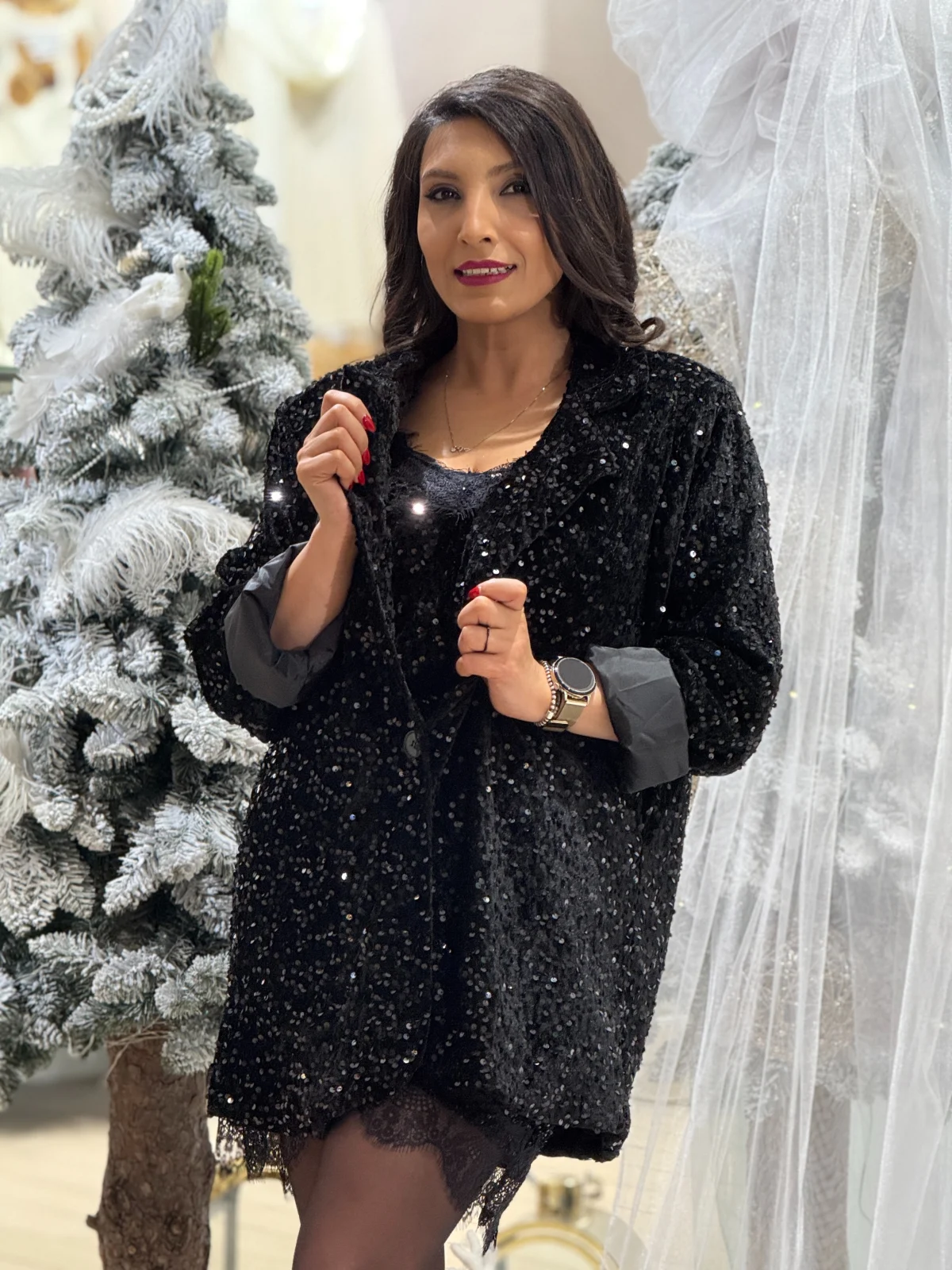 Sacou damă negru cu paiete, perfect pentru apariții elegante
