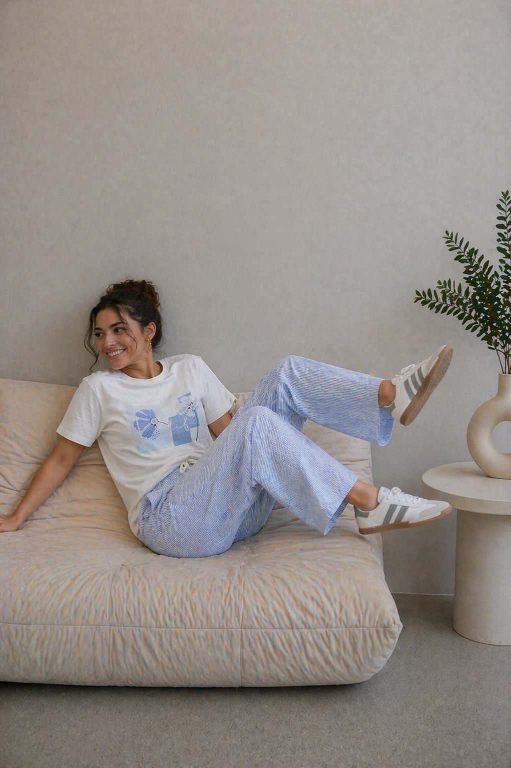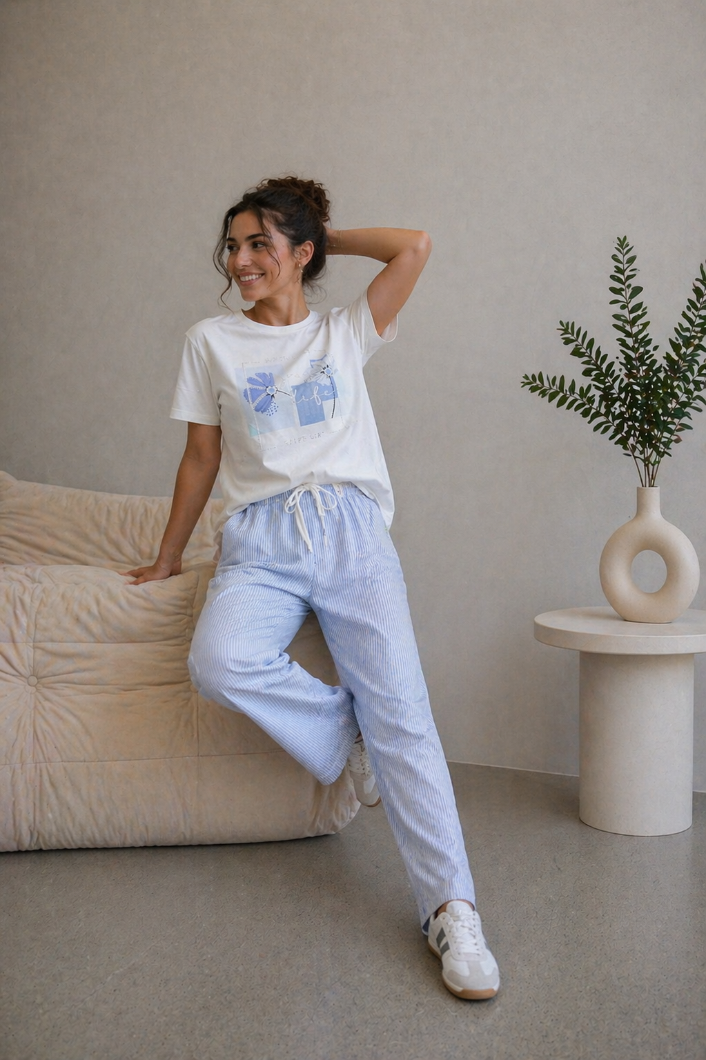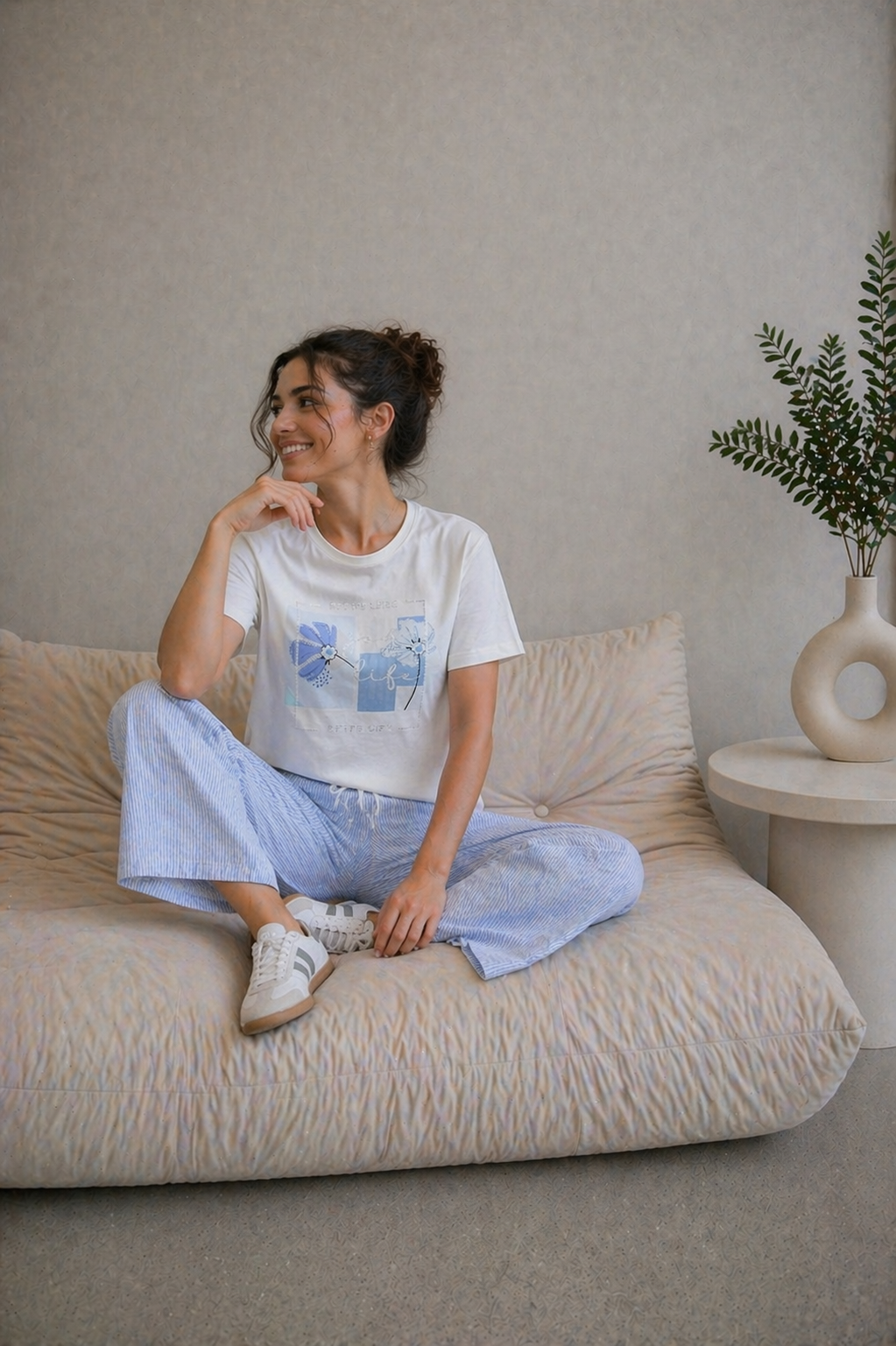 Tricou dama ivory din bumbac cu imprimeu fata cu par cret