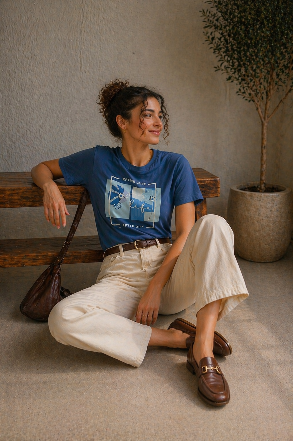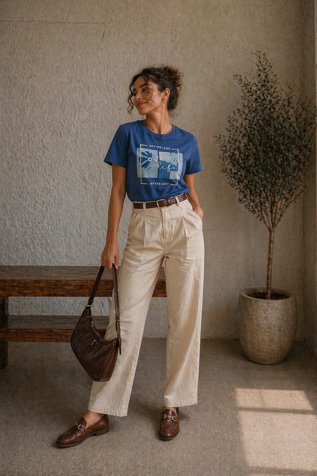 Tricou dama ivory din bumbac cu imprimeu fata cu par cret