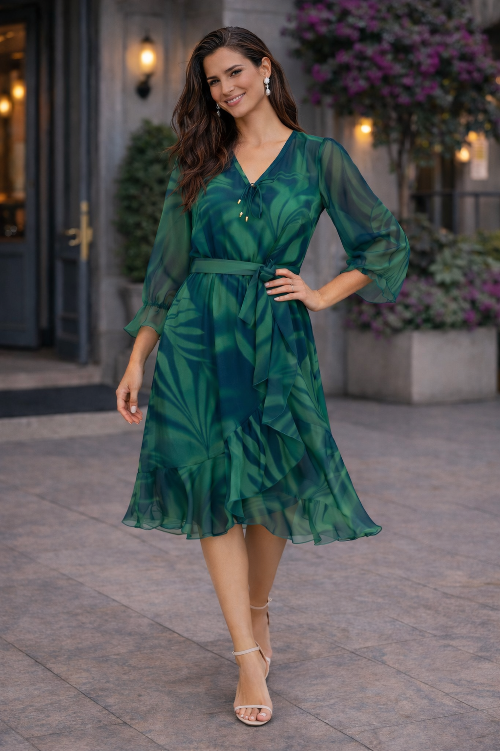 Costum verde elegant cu franjuri