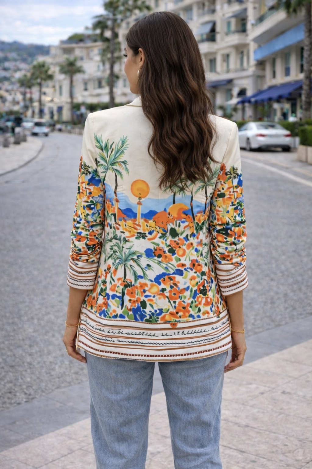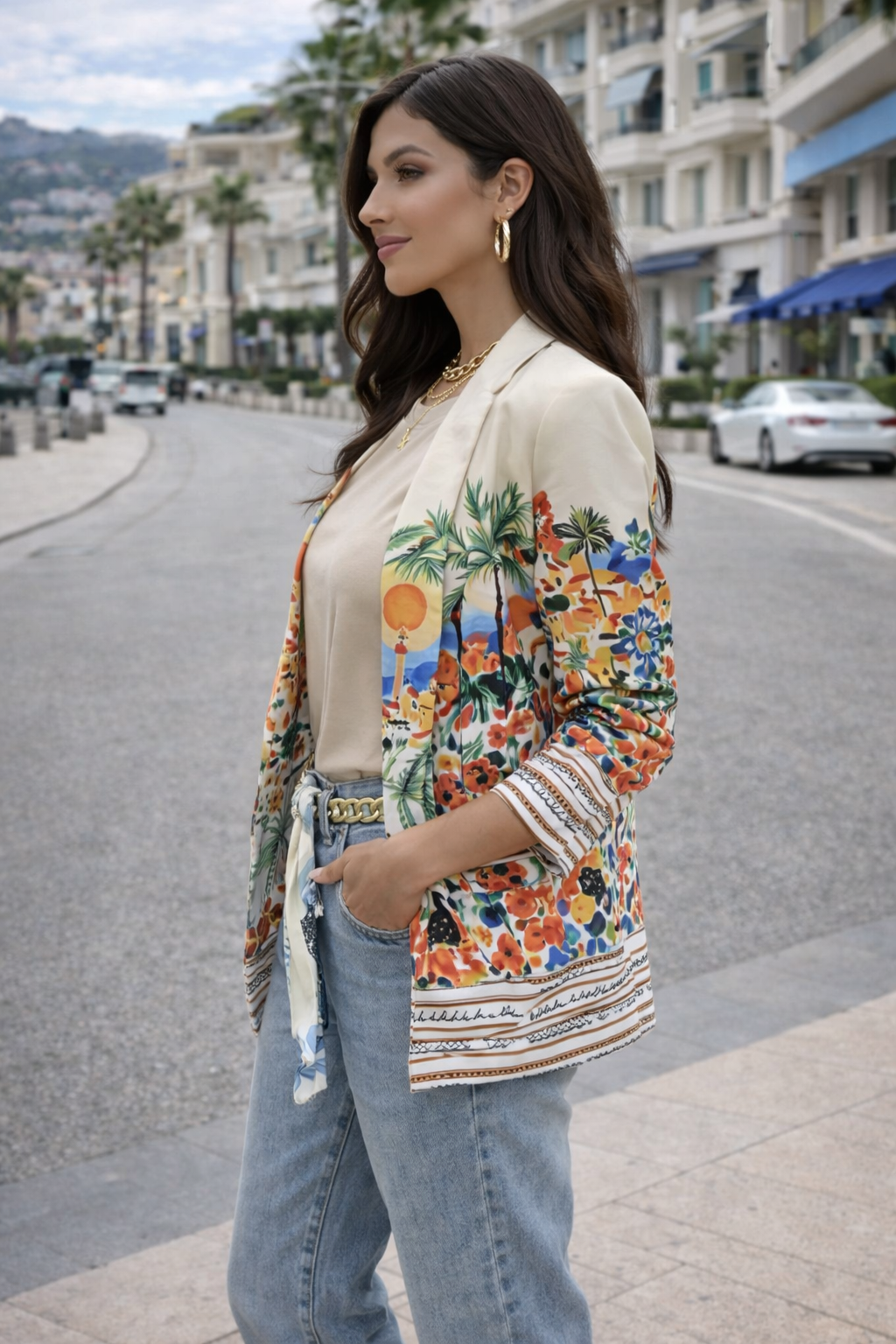 Gândit ca o escapadă vestimentară către țărmurile însorite ale Mediteranei, acest sacou bej cu imprimeu mediteranean este mai mult decât o piesă de îmbrăcăminte – este o stare de spirit. Cu accente inspirate din mozaicurile solare și atmosfera boemă a verii, sacoul aduce prospețime, stil și personalitate oricărei ținute.