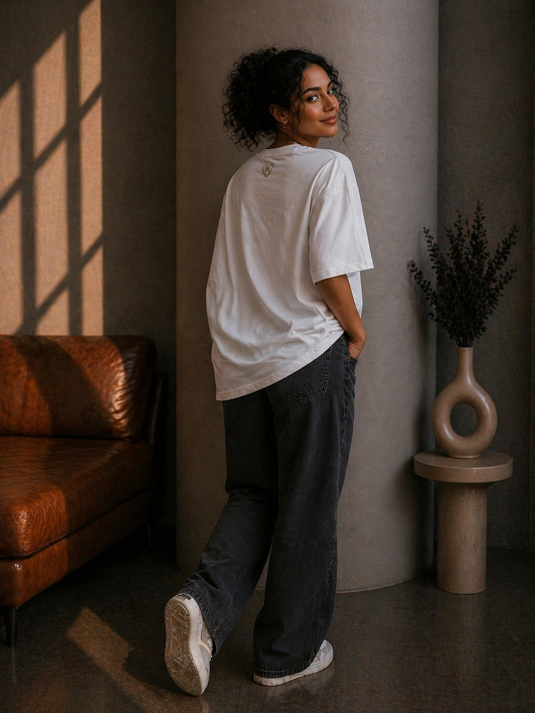 Tricou dama alb din bumbac cu imprimeu fetita pe moped