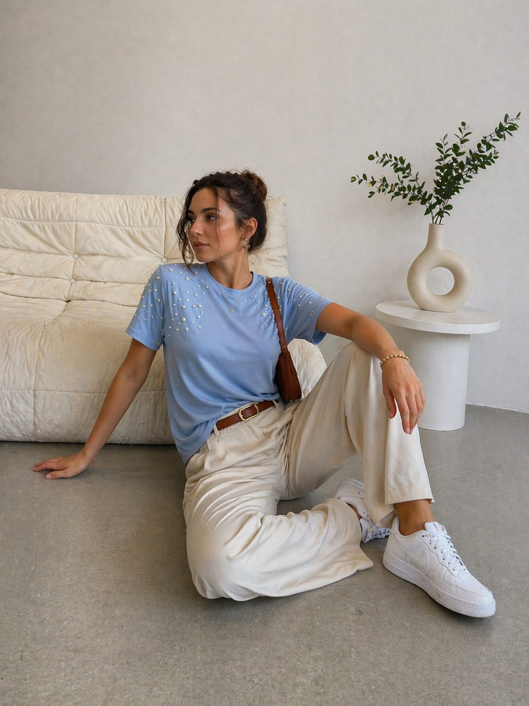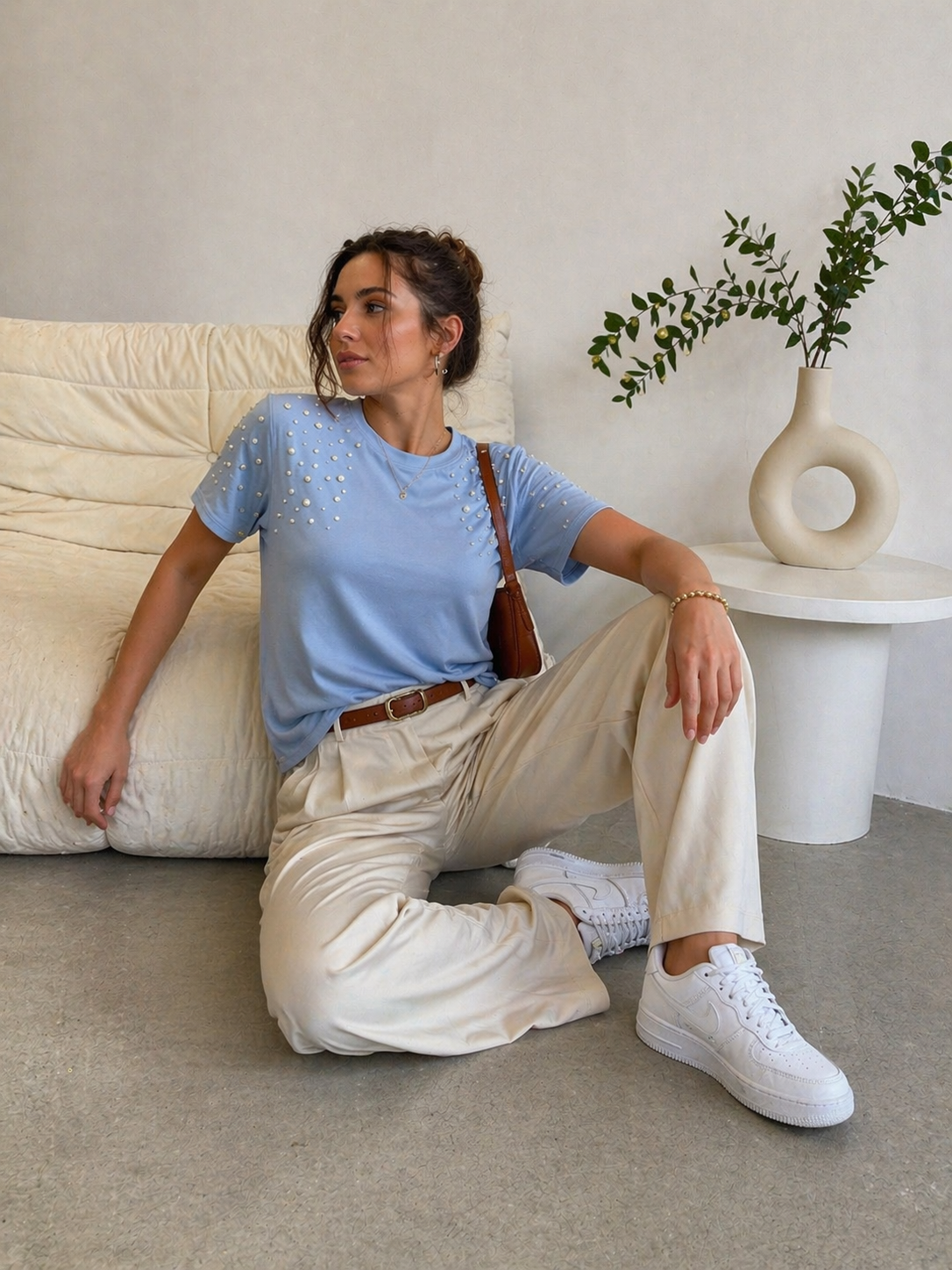 Tricou dama ivory din bumbac cu imprimeu fata cu par cret
