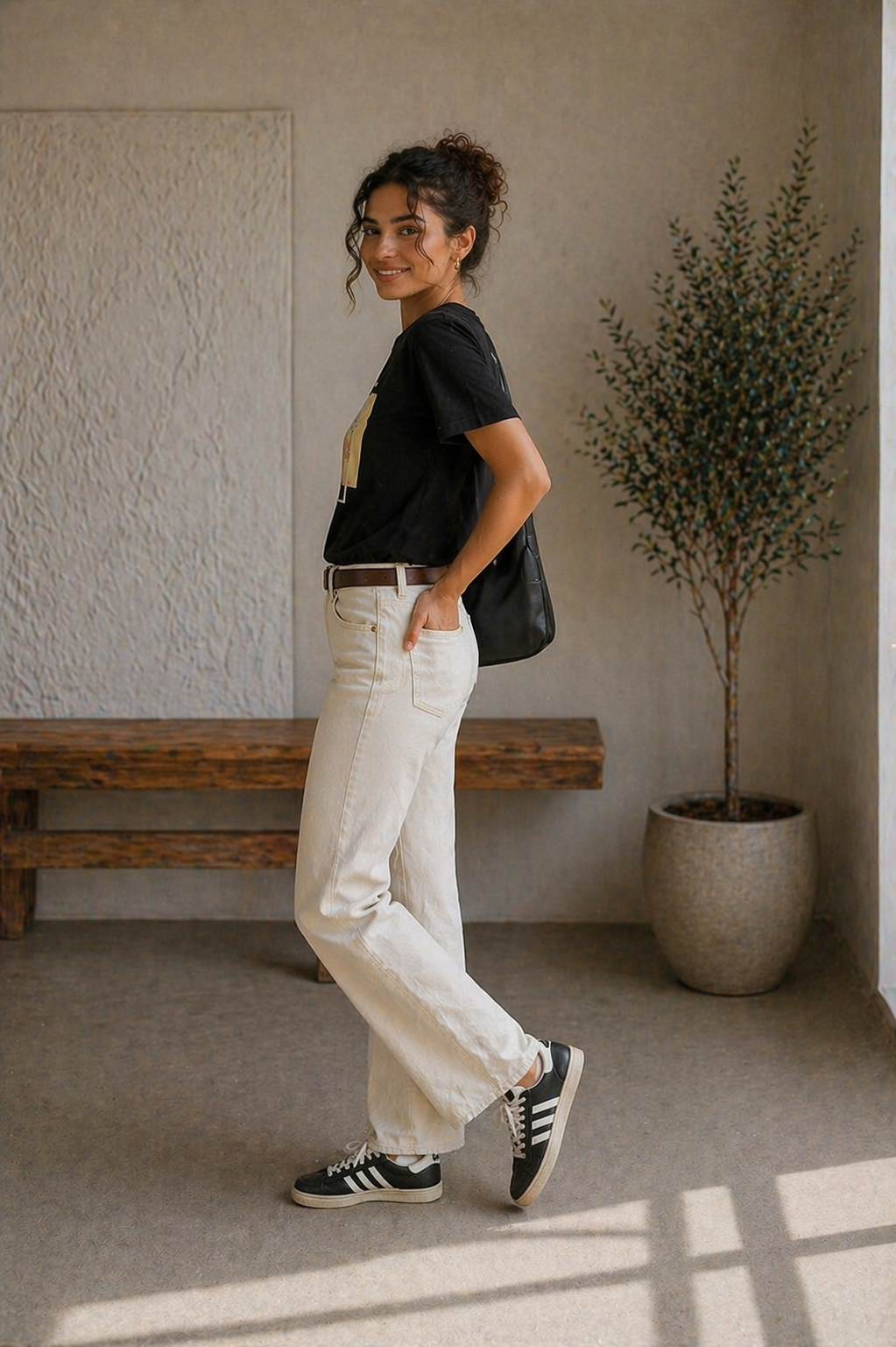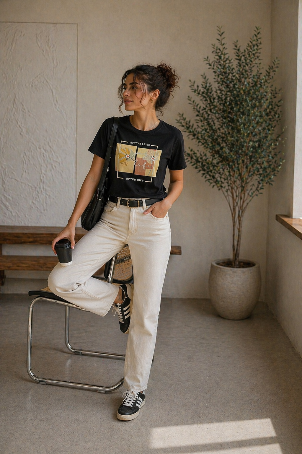 Tricou dama ivory din bumbac cu imprimeu fata cu par cret