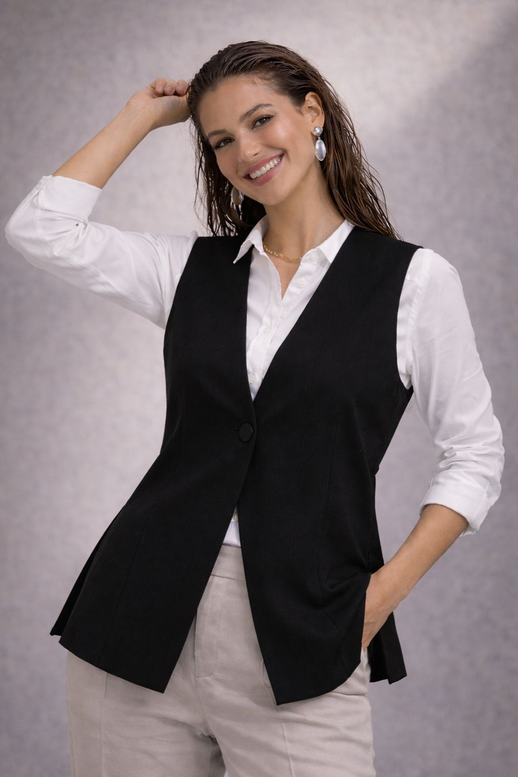 Vesta dama neagra cu inchidere laterala prin nasturi